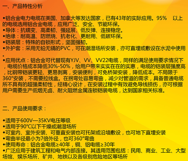 鋁合金電纜:鋁合金電纜ZR-YJLHV 瀏覽:3619